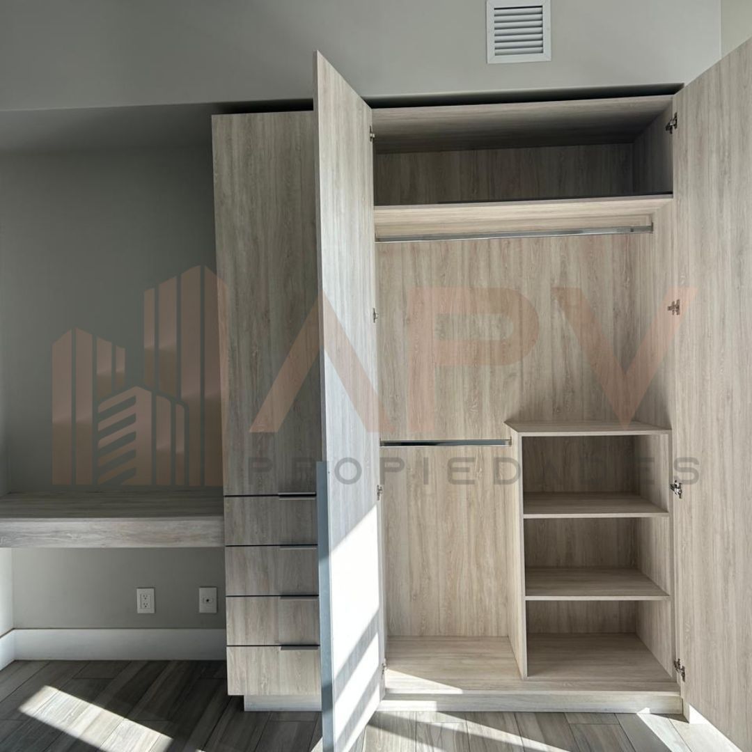 1 habitación amplia con closet de madera.